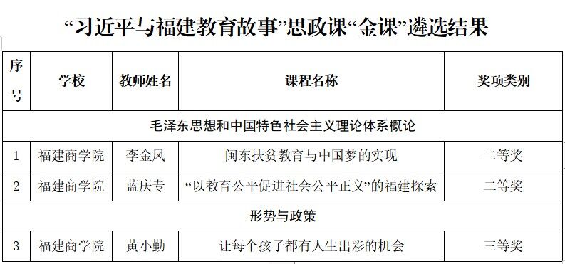 根据《中共福建省教育工委关于公布“习近平与福建教育故事”思政课“金课”遴选结果 暨教学展示活动的通知》(闽委教思〔2023〕14 号)文件精神,beat365官网喜获二等奖2项,三等奖1项,具体如下: