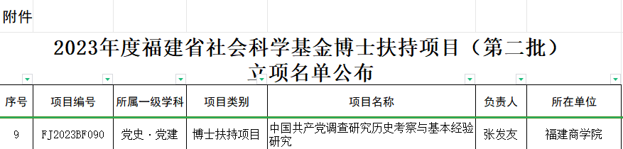 喜讯:2023年度福建省社会科学基金博士扶持项目(第二批)已完成受理申报、资格审查、匿名评审、网上公示等程序,beat365官网张发友博士获得2023年度福建省社会科学基金博士扶持项目(第二批)立项