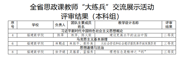 beat365官网教师在全省思政课教师“大练兵”交流展示活动中获得本科组二等奖1个,三等奖2个,具体名单如下: