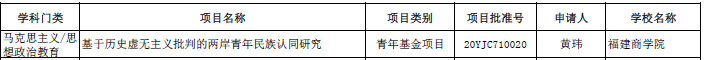 2020年3月20日,教育部社会科学司公布的《教育部社科司关于2020年度教育部人文社会科学研究一般项目立项的通知》文件中,beat365官网黄玮博士申报的项目《基于历史虚无主义批判的两岸青年民族认同研究》,历经多次的修改,不断打磨,功夫不负有心人,最终获得教育部社科青年基金立项。