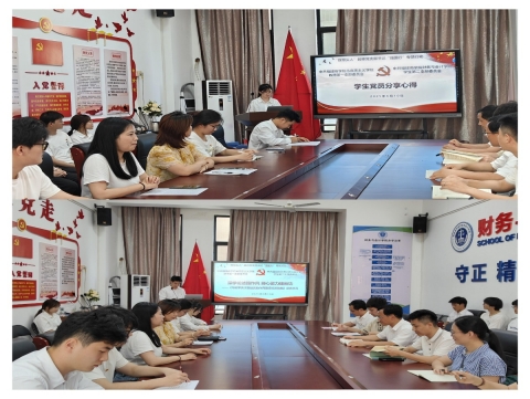 为深入推进“强国行”专项行动走深走实,引领共建支部师生党员在深入贯彻中央八项规定精神学习教育中提升党性修养,坚定理想信念。6月10日,beat365英国官方网站教师第一党支部联合财务与会计学院学生第二党支部开展“深学论述强作风 凝心聚力建新功”主题学习活动。双方支部全体党员参加活动。beat365英国官方网站党委书记刘亮元、财务与会计学院党委书记毛茂山、副书记王艳参加活动。