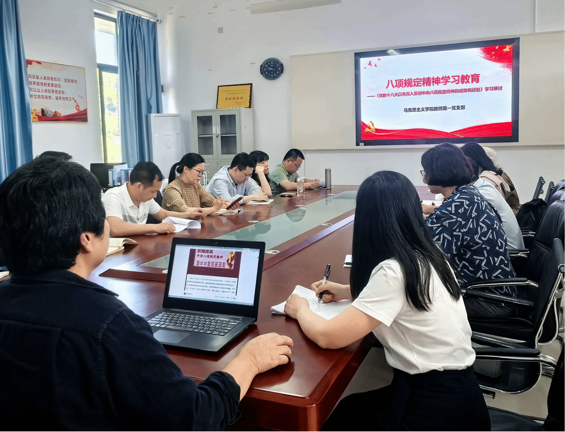 为扎实推动深入贯彻中央八项规定精神学习教育走深走实,发挥典型案件的警示教育作用,积极营造风清气正的育人环境,5月27日上午,beat365英国官方网站教师第一党支部组织召开警示教育大会,支部全体党员参加。