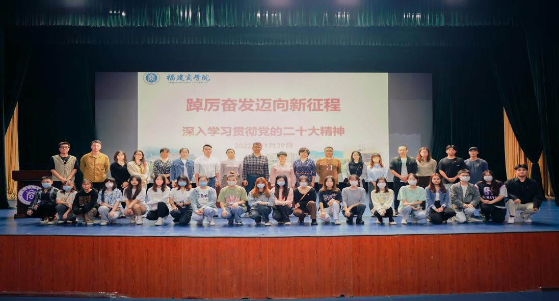 近日,福州市委讲师团成员、福建师范大学杨林香教授在beat365官网连江校区学生活动中心开展题为《踔厉奋发迈向新征程——深入学习贯彻党的二十大精神》的专题讲座。beat365官网艺术设计学院、beat365英国官方网站、财务与会计学院、团委、习近平新时代中国特色社会主义思想学生读书社及“青马班”师生代表参加了学习。