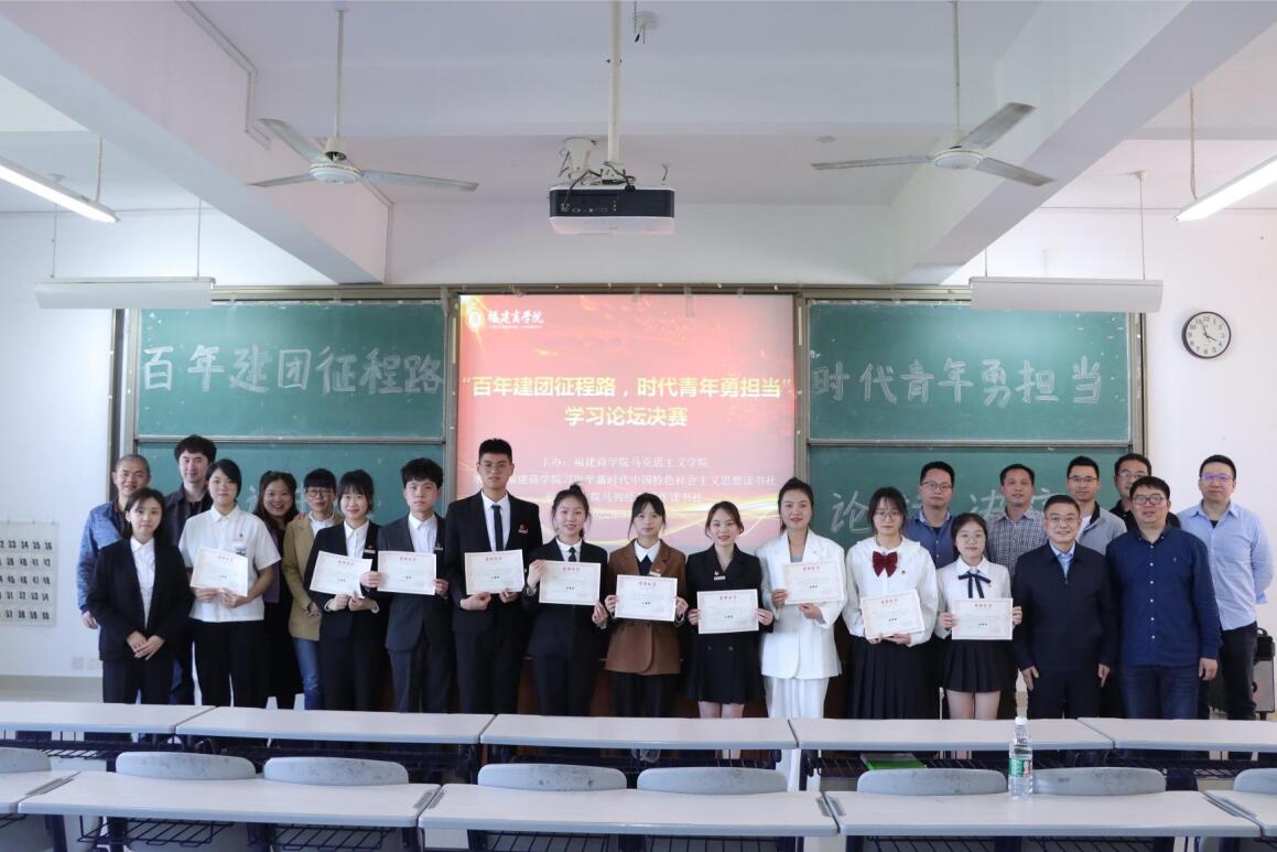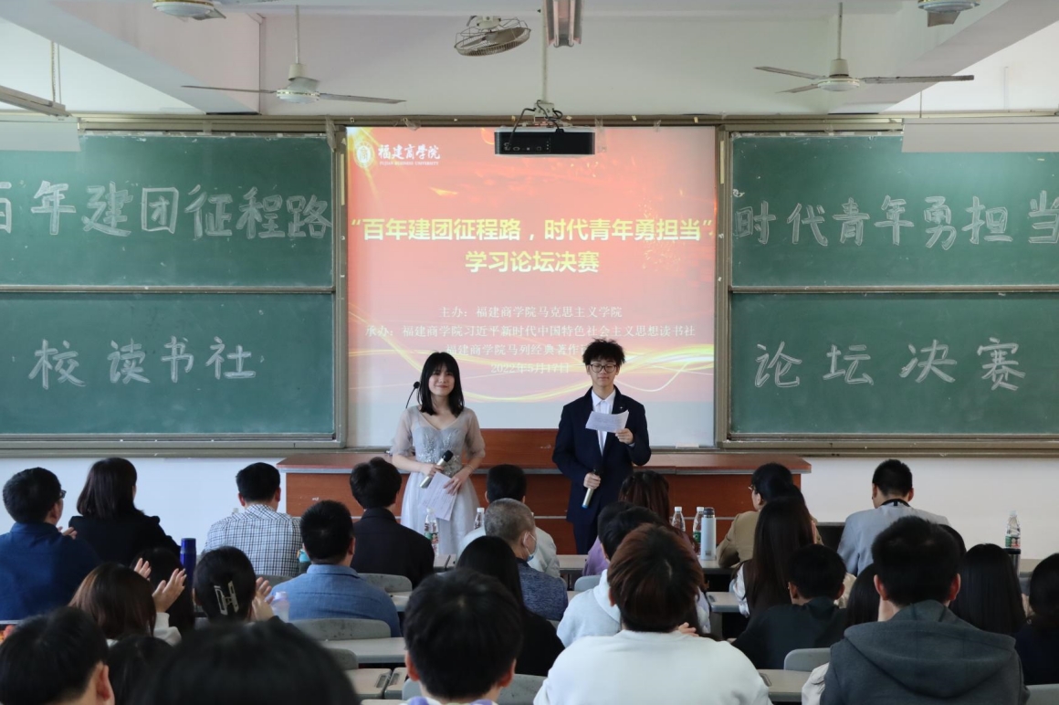 2022年5月17日下午,校习近平新时代中国特色社会主义思想读书社和校马列经典著作读书社在连江校区诚信楼中阶三举办主题为“百年建团征程路,时代青年勇担当”的学习论坛决赛。校党委副书记吴访益、beat365英国官方网站部分教师及二级学院读书社相关指导老师、校读书社成员近200人参加了本次活动。