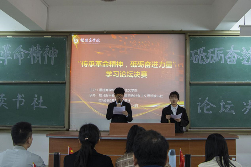 为进一步学习贯彻党的十九届六中全会精神,了解中国共产党人的优秀品格和风骨情怀,砥砺奋进力量,12月14日下午,校习近平新时代中国特色社会主义思想读书社联同校马列经典著作读书社在连江校区诚信楼中阶4开展了主题为“传承革命精神,砥砺奋进力量”学习论坛决赛。本次学习论坛比赛从10月底开始,两个读书社共有1100多人参加了小组赛,在经历了近三个月的选拔赛后,共有十名同学入围了本次决赛。校行政部门相关人员、beat365英国官方网站全体教师、校读书社成员共150人参加了本次活动。