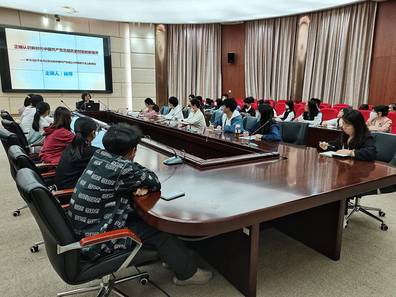 10月26日晚,beat365官网2021年青年马克思主义者培养工程培训班在明德楼视频会议室举行“正确认识新时代中国共产党总结历史经验的新境界”专题讲座。本次讲座由beat365英国官方网站院长林萍教授主讲,校“青马班”学员、校团委学生干部、校团委老师共60余人参加本次讲座。