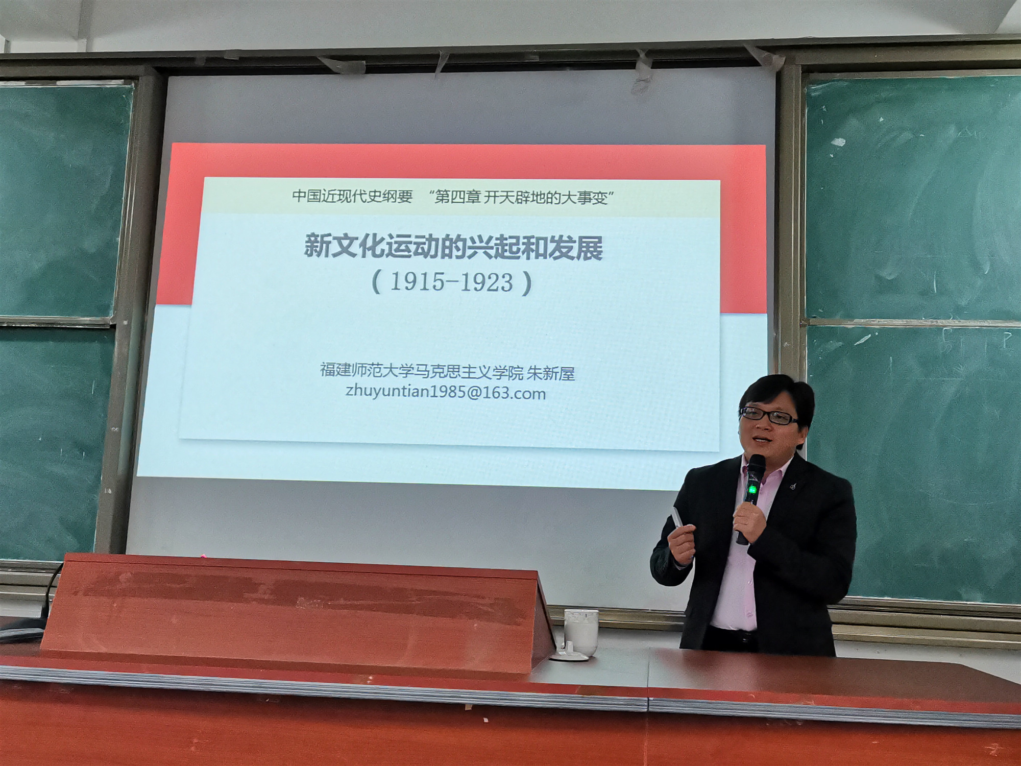 2020年12月14日,福建省高校青年教学名师福建师范大学朱新屋副教授应邀到beat365官网作题为”新文化运动的兴起和发展(1915—1923)”的示范教学。beat365英国官方网站部分教师以及2020级数据科学与大数据技术1、2班学生参加学习。