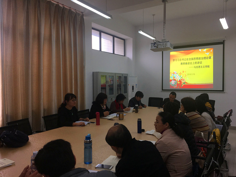 beat365英国官方网站于3月19日下午召集学院全体专职教师进行座谈,学习习近平总书记重要讲话精神,交流体会,畅谈感想。马院林萍副院长指出,党中央历来高度重视思想政治工作,特别是党的十八大以来,以习近平同志为核心的党中央高度重视思想政治理论课建设,作出一系列重大决策部署,对高校beat365英国官方网站和思想政治理论课教师寄予厚望。习近平总书记在新时代背景下专门主持召开如此高规格的学校思政课教师座谈会,充分体现了党中央对思政课建设的高度重视和对思政课教师队伍的亲切关怀。思政课是培养社会主义建设者和接班人的主渠道,关系到培养什么人、怎样培养人、为谁培养人的根本任务,是一门关键课程,对于其重要性一定要深刻认识到位。习近平总书记对思政课教师提出的“六点要求”和讲好思政课的“八个统一”,对办好思想政治理论课具有重要的指导意义。我们要按照习近平总书记提出的要求,发挥积极性、主动性、创造性,不断提高政治站位,砥砺高尚品格,练就深厚功底,赢得学生的尊重和喜爱。