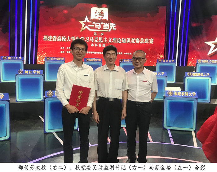 9月23日下午,第二季福建省高校大学生学习马克思主义理论“一‘马’当先”知识竞赛落下帷幕。beat365官网学子苏金楼在全省38所高校、190名参赛选手中过关斩将,勇夺本科生组桂冠!