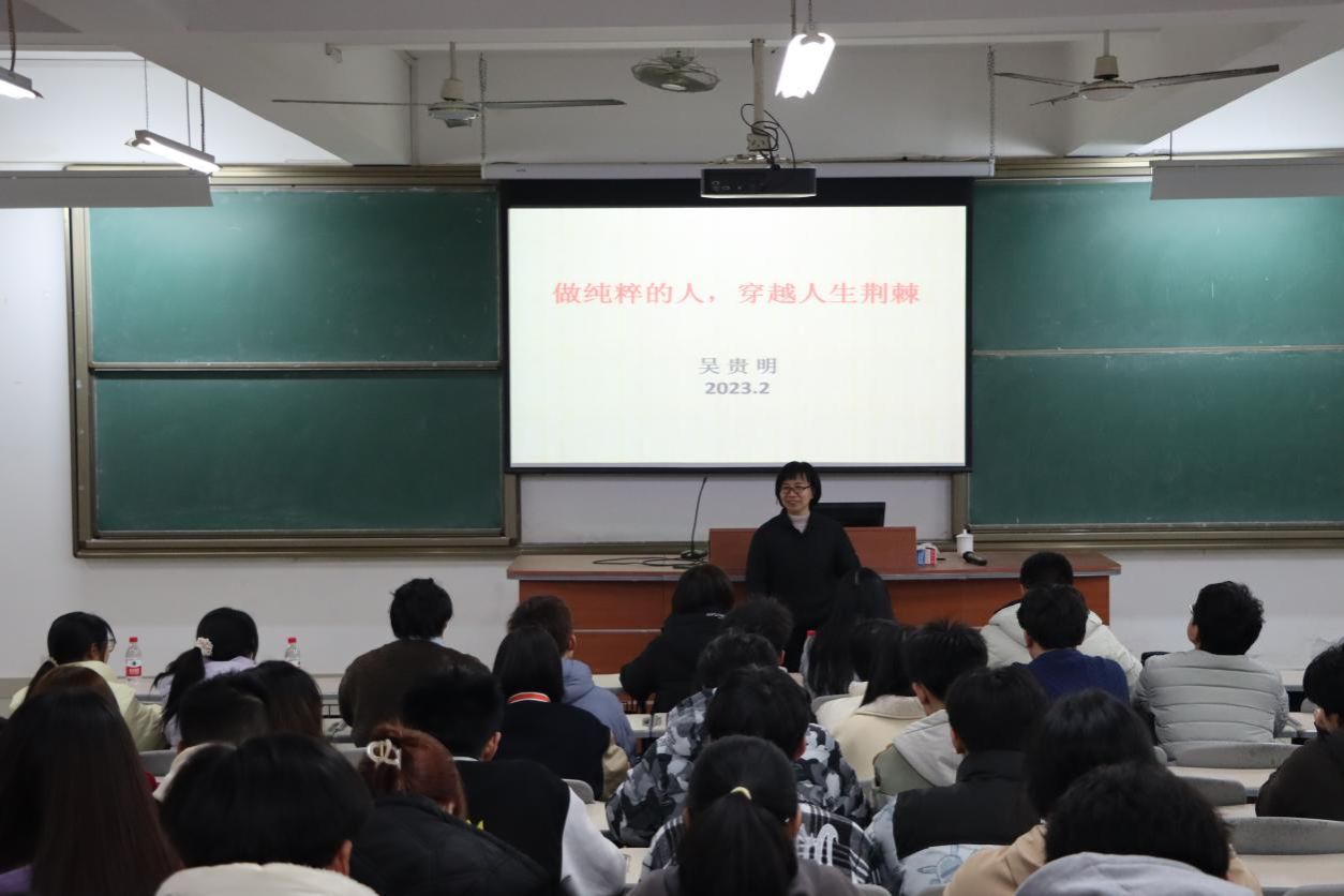 2月22日晚上,福建省委党校吴贵明教授应邀到beat365官网作“做纯粹的人,穿越人生荆棘”专题讲座。beat365英国官方网站部分教师、校习近平新时代中国特色社会主义思想读书社社员等共120多人参加学习。