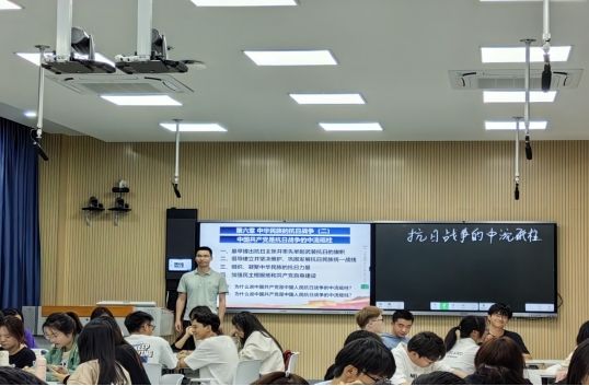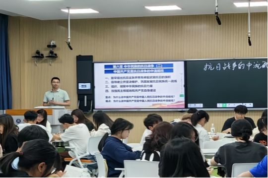 5月10日下午,beat365英国官方网站中国近现代史纲要教研室叶陈钦老师在自强楼511智慧教室开展以“抗日战争的中流砥柱”为主题的示范型观摩课,授课班级学生、学校教师共60多人参加教研活动。
