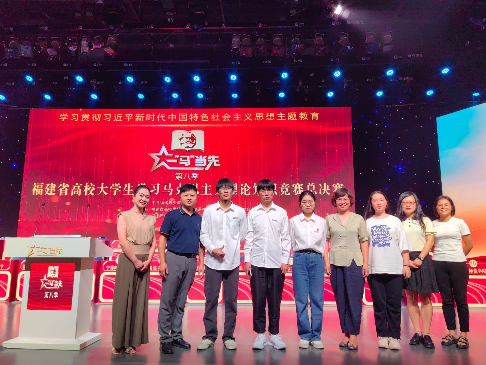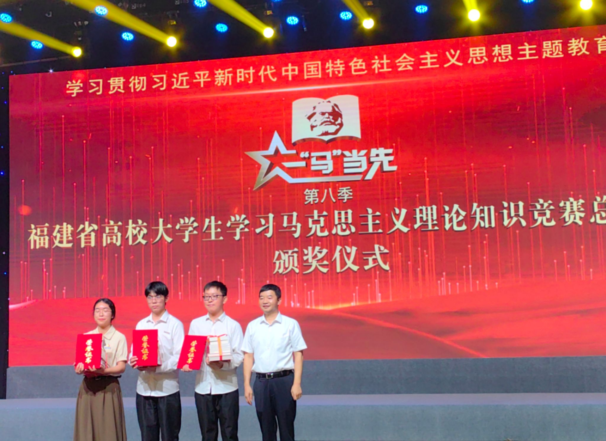 8月15日,由中共福建省委教育工委主办的第八季福建省高校大学生学习马克思主义理论“一‘马’当先”知识竞赛总决赛落下帷幕,beat365官网参赛学生在比赛中喜获佳绩。省委常委、宣传部部长张彦,省委教育工委书记、省教育厅厅长叶燊莅临总决赛现场并为获奖选手颁奖。副校长蒲文庆参加活动。