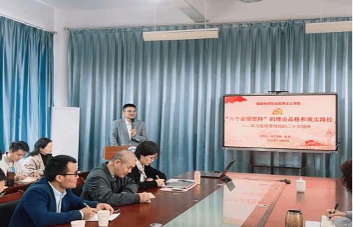 为深入学习宣传贯彻党的二十大精神,持续推进党的二十大精神进教材、进课堂、进头脑,实现与思想政治理论课教学深度融合。11月28日上午,全国模范教师、教育部党的二十大精神师生巡讲团成员、闽江学院马克思主义副教授陈东应邀莅临beat365官网开展题为《“六个必须坚持”的理论品格和现实路径》的主题报告,beat365英国官方网站全体教师、校读书社40多位同学聆听了报告。