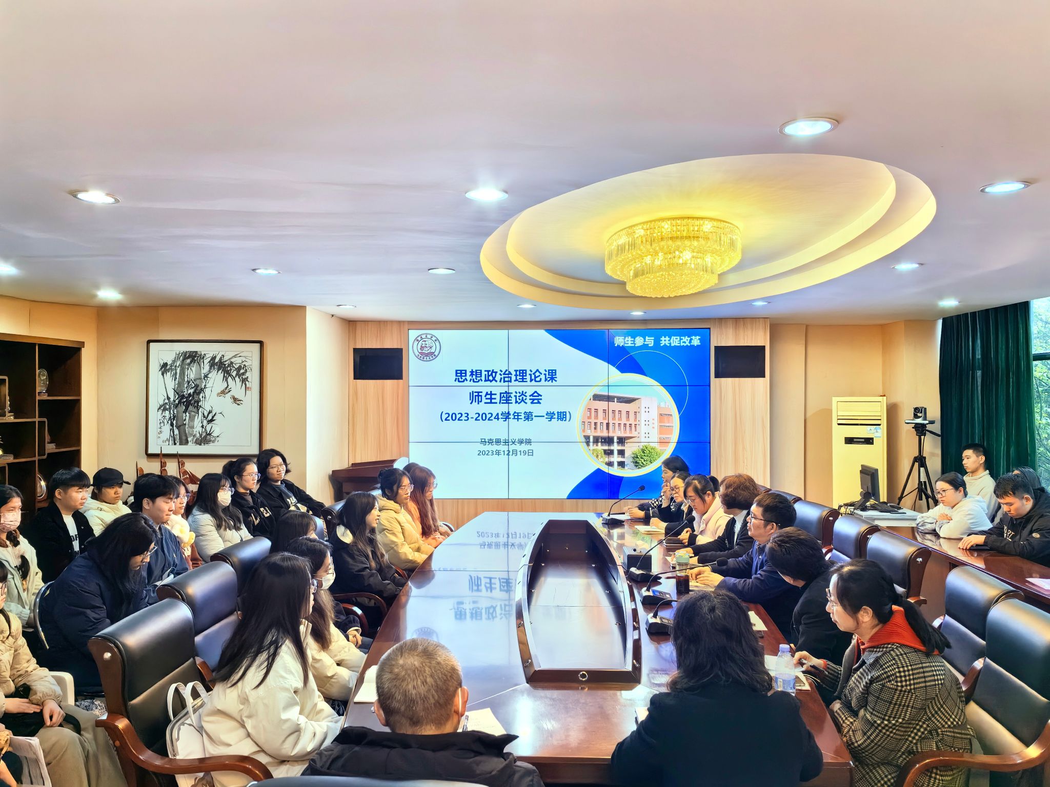 为更好促进思政课的教学和改革,提升学生在思政课中的获得感和对思政课的认同,12月19日下午,beat365官网在马尾校区召开2023-2024第一学期思想政治理论课师生座谈会。校教务处、质量监控与评估处有关人员,beat365英国官方网站教师代表,马尾校区学生代表共40人参加了会议。