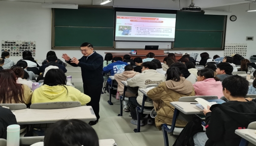 11月27日下午,校党委书记吴访益在连江校区诚信楼为财务与会计学院100余名2022级本科生讲授题为《开辟马克思主义中国化时代化新境界》的专题思政课。学校相关部门负责人、beat365英国官方网站负责人旁听了授课。