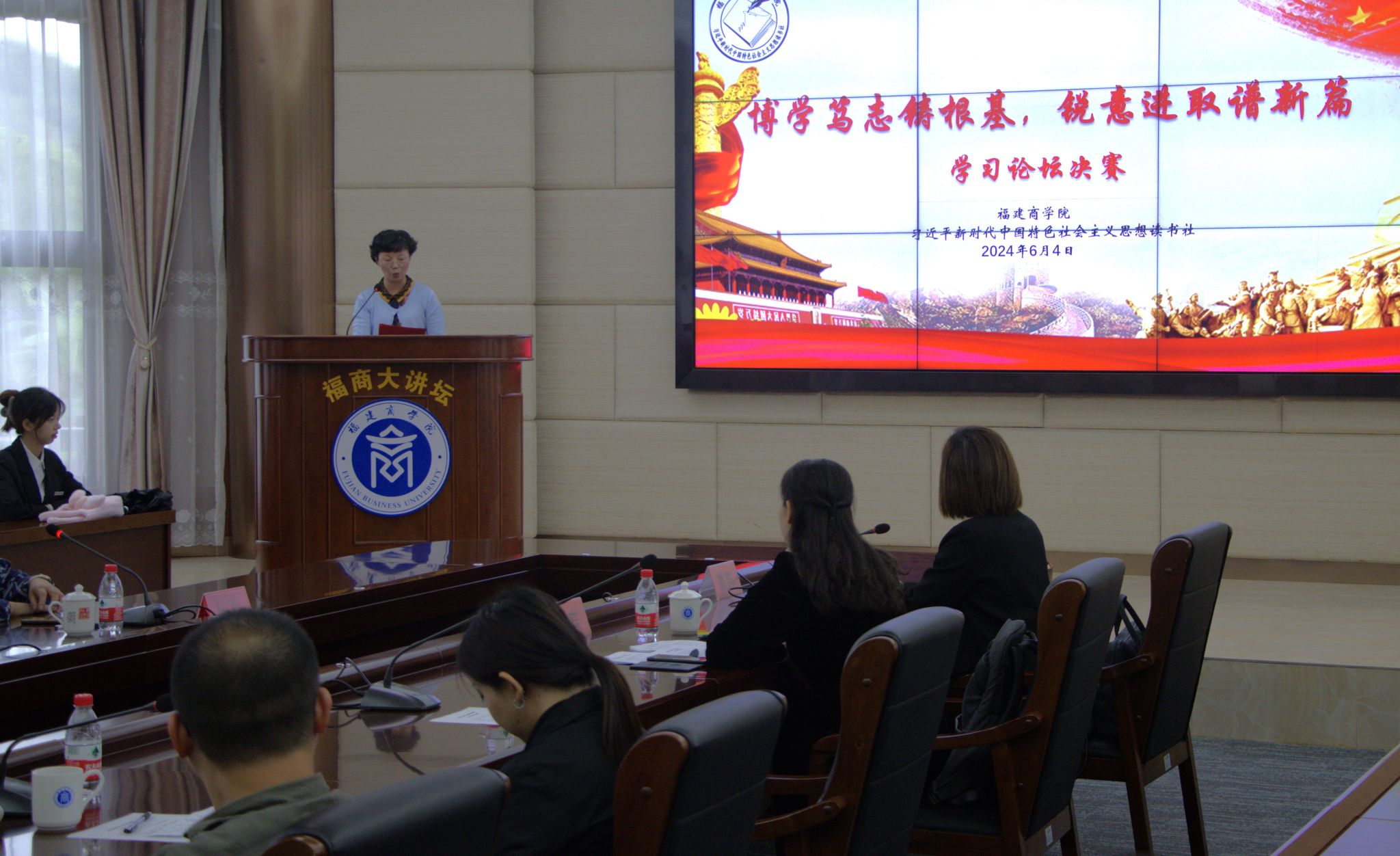2024年6月4日,福建商学院习近平新时代中国特色社会主义思想读书社与马列经典著作读书社,在连江校区明德楼视频会议室联合举办了主题为“博学笃志著根基 锐意进取谱新篇”的学习论坛决赛。学校林文艺副校长、beat365英国官方网站负责人和读书社指导老师、beat365英国官方网站部分教师及读书社社员等近百名师生参加此次活动。