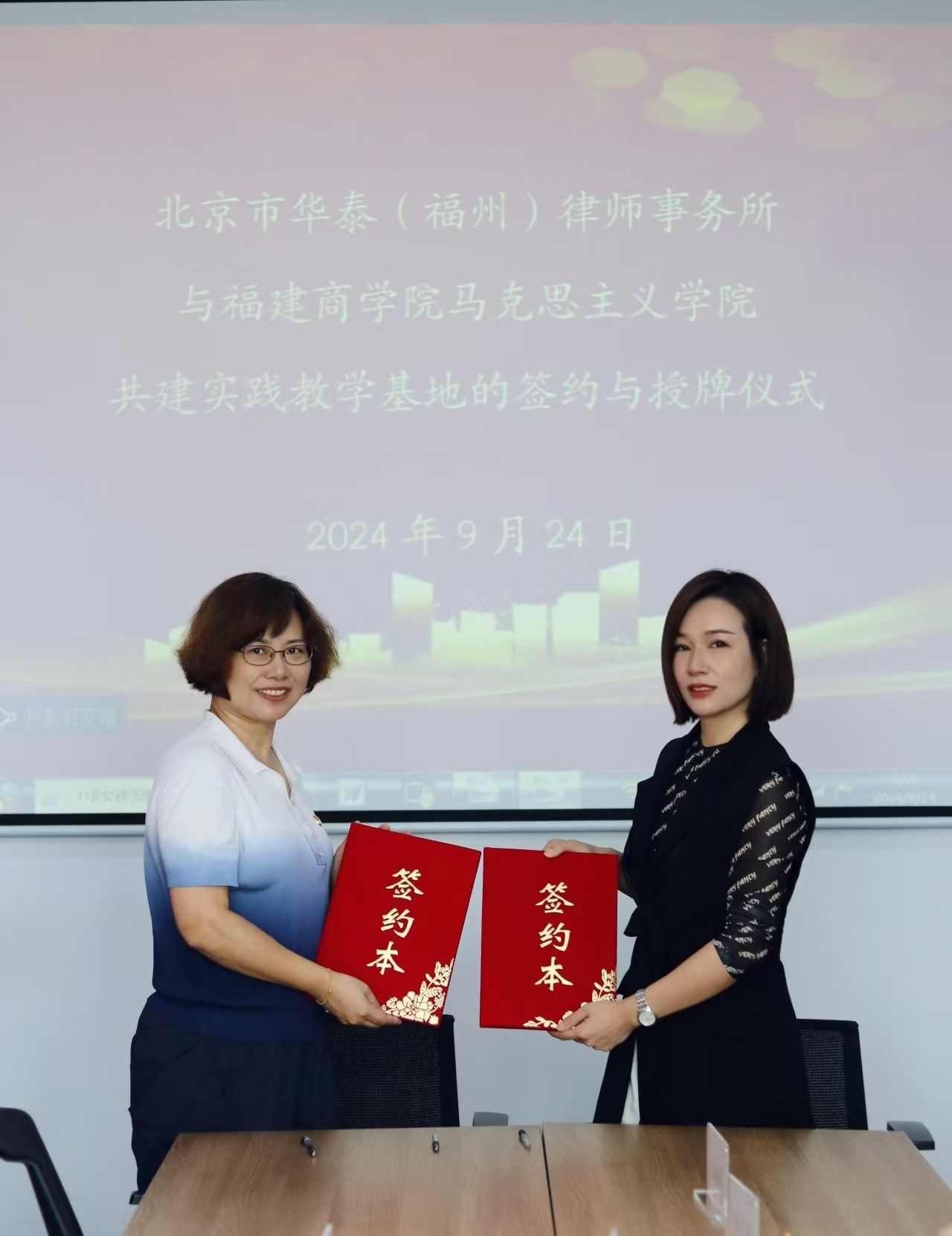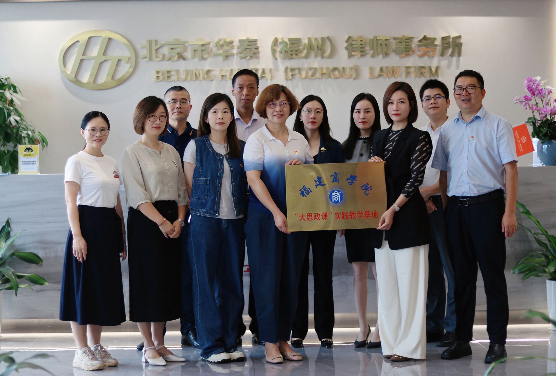为深入贯彻落实习近平总书记关于“大思政课”的重要指示批示精神,按照教育部关于开展高校与“大思政课”实践教学基地结对行动的部署要求,9月24日上午,beat365官网与北京市华泰(福州)律师事务所共建“大思政课”实践教学基地签约揭牌仪式在北京市华泰(福州)律师事务所举行。律所执行主任方云香、执行副主任兼党务负责人张江波、beat365官网党委书记、院长林萍及律所高级合伙人、部分老师参加仪式。