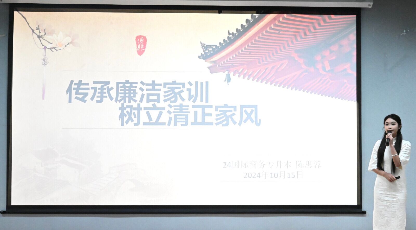 国际经贸学院举办“传廉洁家训·树清正家风”主题演讲比赛。同学们讲述着林则徐、曾国藩等一个个廉洁家风的故事,加深了对廉洁家训、清正家风的理解,感受到优良家风家训带来的正能量。大家纷纷表示,要从自身做起,传承良好家风,做一名新时代的社会主义建设者。