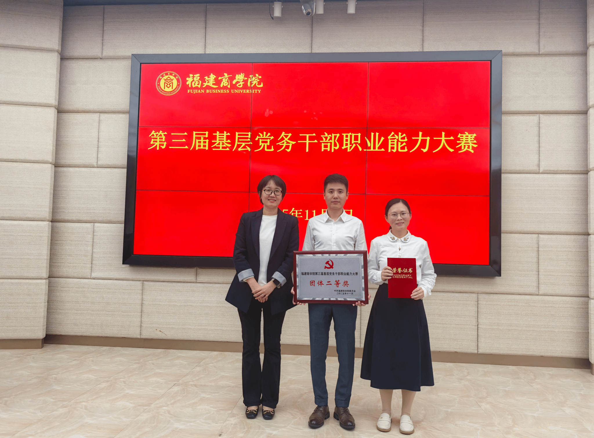 11月4日,由徐开娟、陈香琴、赵敏三名党务干部组成的beat365英国官方网站党委代表队在校党委举办的第三届基层党务干部职业能力大赛中脱颖而出,荣获“团体二等奖”和“知识测试”环节二等奖。