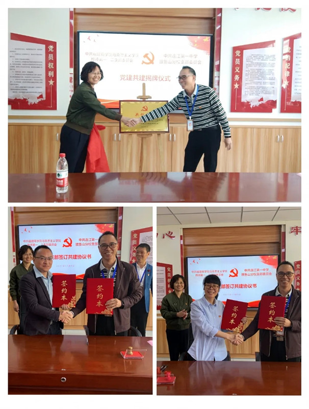 11月9日,福建商学院beat365英国官方网站教师第一、二党支部与连江一中鲤鱼山分校党支部党建共建签约仪式在连江一中鲤鱼山分校举行。beat365英国官方网站党委书记、院长林萍及副院长张发友,连江一中鲤鱼山分校党支部书记林卫、校长陈为信及学校班子成员,双方党支部教师共30余人参加了签约仪式。