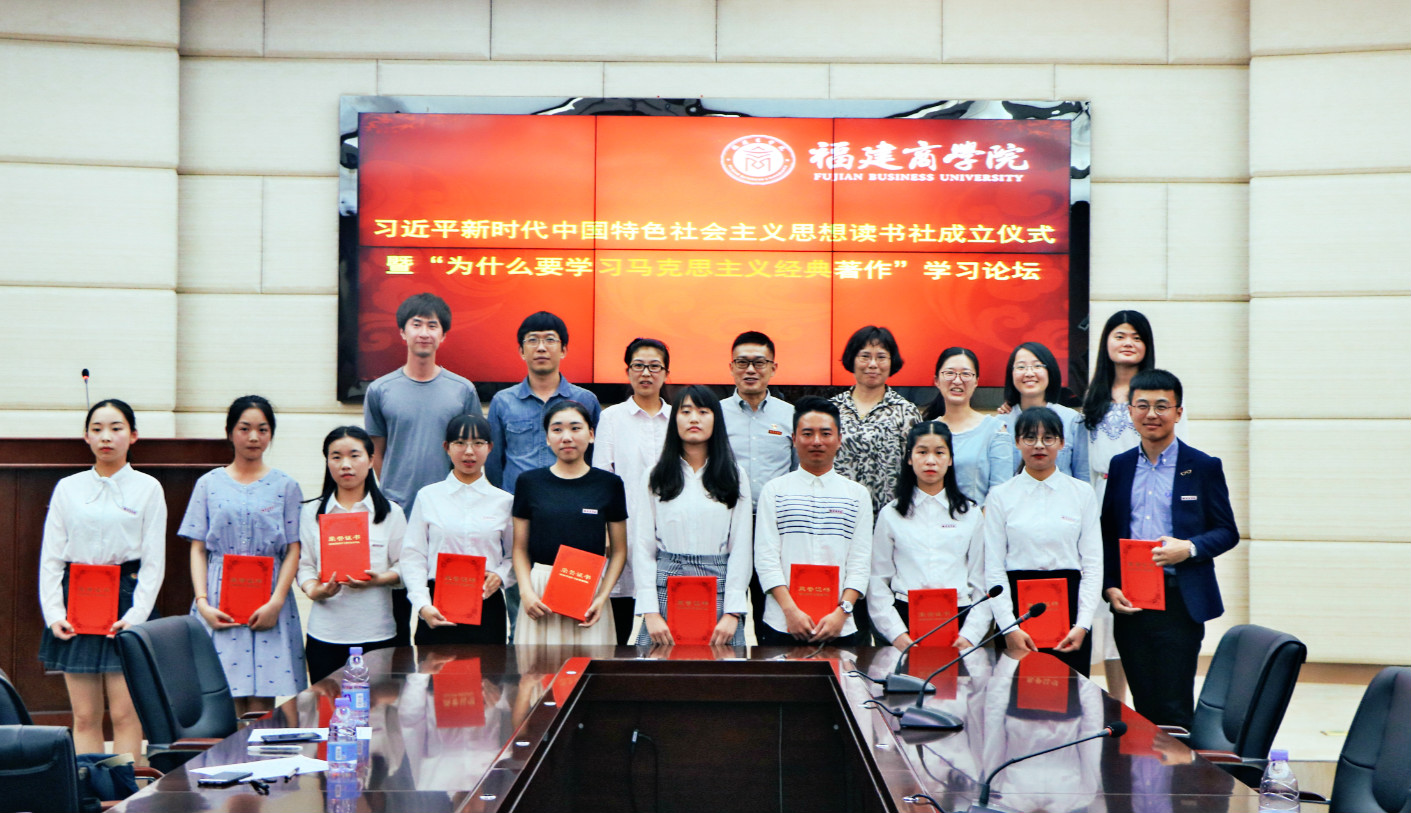 为进一步推动beat365官网青年学子积极学习践行习近平新时代中国特色社会主义思想,5月9日晚,福建商学院习近平新时代中国特色社会主义思想读书社成立仪式暨“为什么要学习马克思主义经典著作”“五月论坛”在连江校区视频会议室举行。校党委副书记吴访益、beat365英国官方网站负责人、部分系(院)辅导员和读书社社员代表共100余人出席了成立仪式。