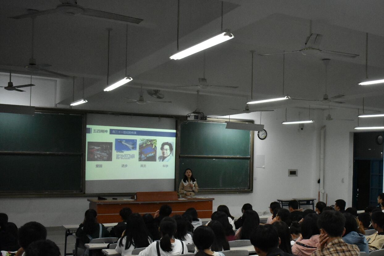 在宣讲活动上,陈安琪同学首先围绕“五四精神,永垂不朽”这一主题,深入剖析了五四运动对中国共产党的产生、发展有深远影响,让同学们充分认识到中国共产党党史与五四精神的重要性。陈安琪同学指出,习近平总书记在北京大学的师生座谈会给我们的启迪是鼓舞人心的;作为当代大学生,我们有责任坚持五四精神,传承五四思想。随后,孟雨同学以《习近平新时代中国特色社会主义思想三十讲》一书中的核心内容作为主要依据,展开对坚持“一国两制”和推进祖国统一的探讨。一国两制,即“一个国家,两种制度”,是中国政府为实现国家和平统一而提出的基本国策。坚持“一国两制”和推进祖国统一是实现中华民族伟大复兴的必然要求。孟雨同学列举西藏与印度交接处领土仍被占领、新疆和西藏两自治区交界处的土地争端、南海问题以及“台独”问题等例子,表明了我国和平统一的目标尚未完全实现,继续坚持“一国两制”原则为政治基础,坚决维护国家主权和领土完整,继续推进两岸各领域交流合作,为两岸同胞谋福祉既是我们的使命,也是我们的初心。