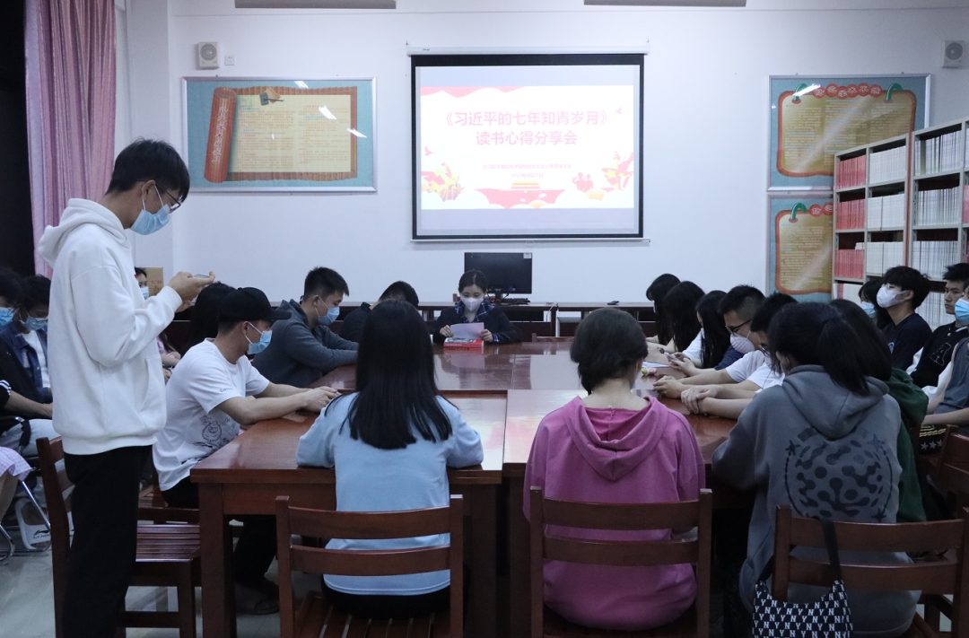 为坚持以习近平新时代中国特色社会主义思想为指导,深入学习贯彻习近平总书记“七一”重要讲话精神和党的十九届六中全会精神,弘扬光荣革命精神传统,宣传中国共产党人的精神谱系,2022年4月27日晚,校习近平新时代中国特色社会主义思想读书社在连江校区自强楼114活动室开展了《习近平的七年知青岁月》读书心得分享会。会议由校读书社指导老师林甦垚主持,读书社部分社员参与了此次活动。活动中,师生们相互分享、交流了学习阅读《习近平的七年知青岁月》的心得体会。