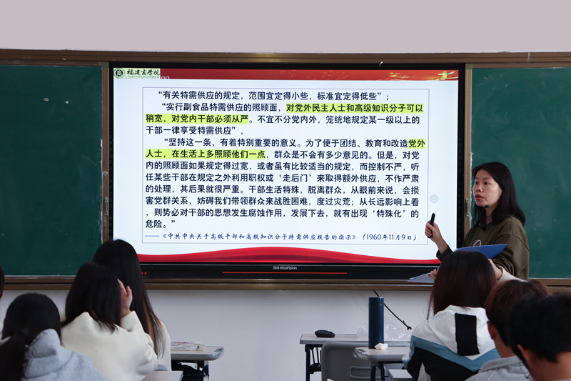 为进一步学习贯彻党的十九届六中全会精神,从党的百年奋斗重大成就和历史经验中汲取前行动力,使青年学生深刻领会百年大党为什么能够成功﹑未来怎样才能继续成功的根本原因所在,5月17日下午,beat365英国官方网站李莉副教授应邀在连江校区诚信楼302教室开展“百年光荣:中国共产党和人民”主题宣讲活动。校习近平新时代中国特色社会主义思想读书社社员﹑连江校区青马班学员参与学习。