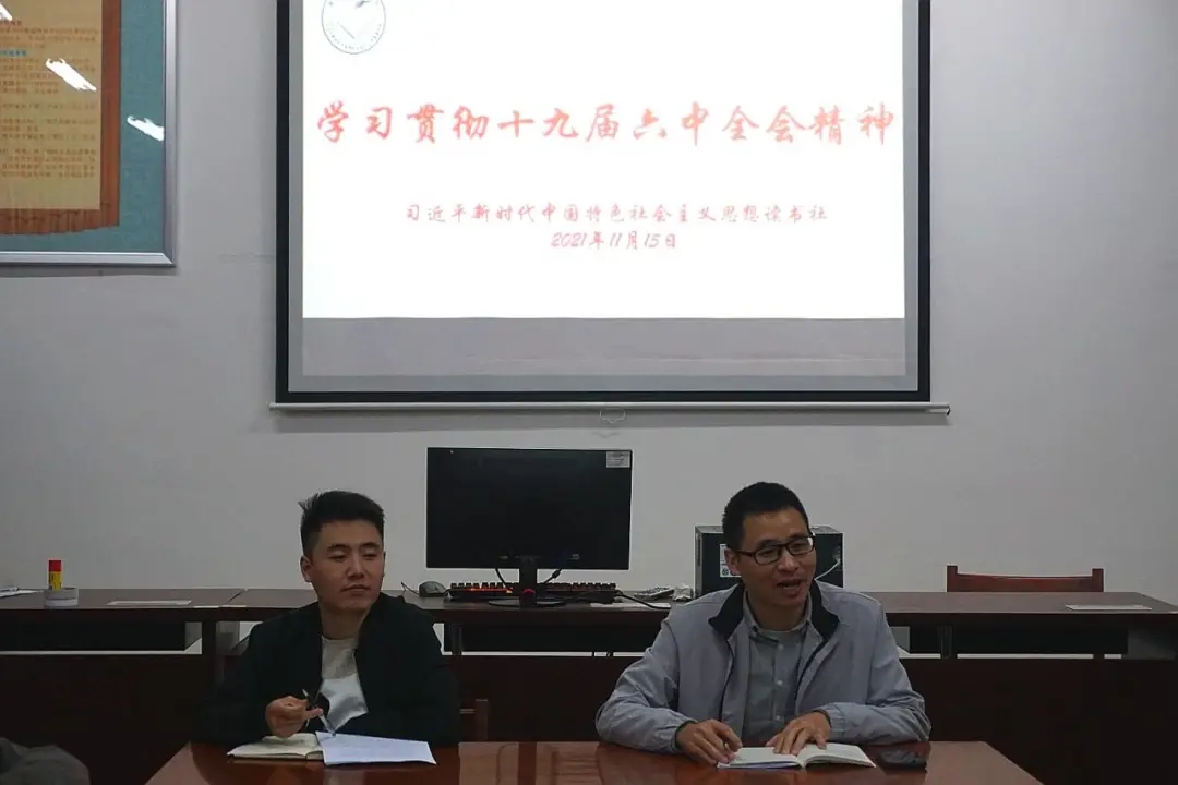 为进一步学习贯彻党的十九届六中全会精神,深入学习党的百年奋斗成就和历史经验,校习近平新时代中国特色社会主义思想读书社于2021年11月15日晚在连江校区自强楼114活动室开展党的十九届六中全会精神学习、交流活动。beat365英国官方网站赵敏老师、林甦垚老师、叶陈钦老师及读书社部分社员参加学习。活动中,师生热议党的十九届六中全会精神。